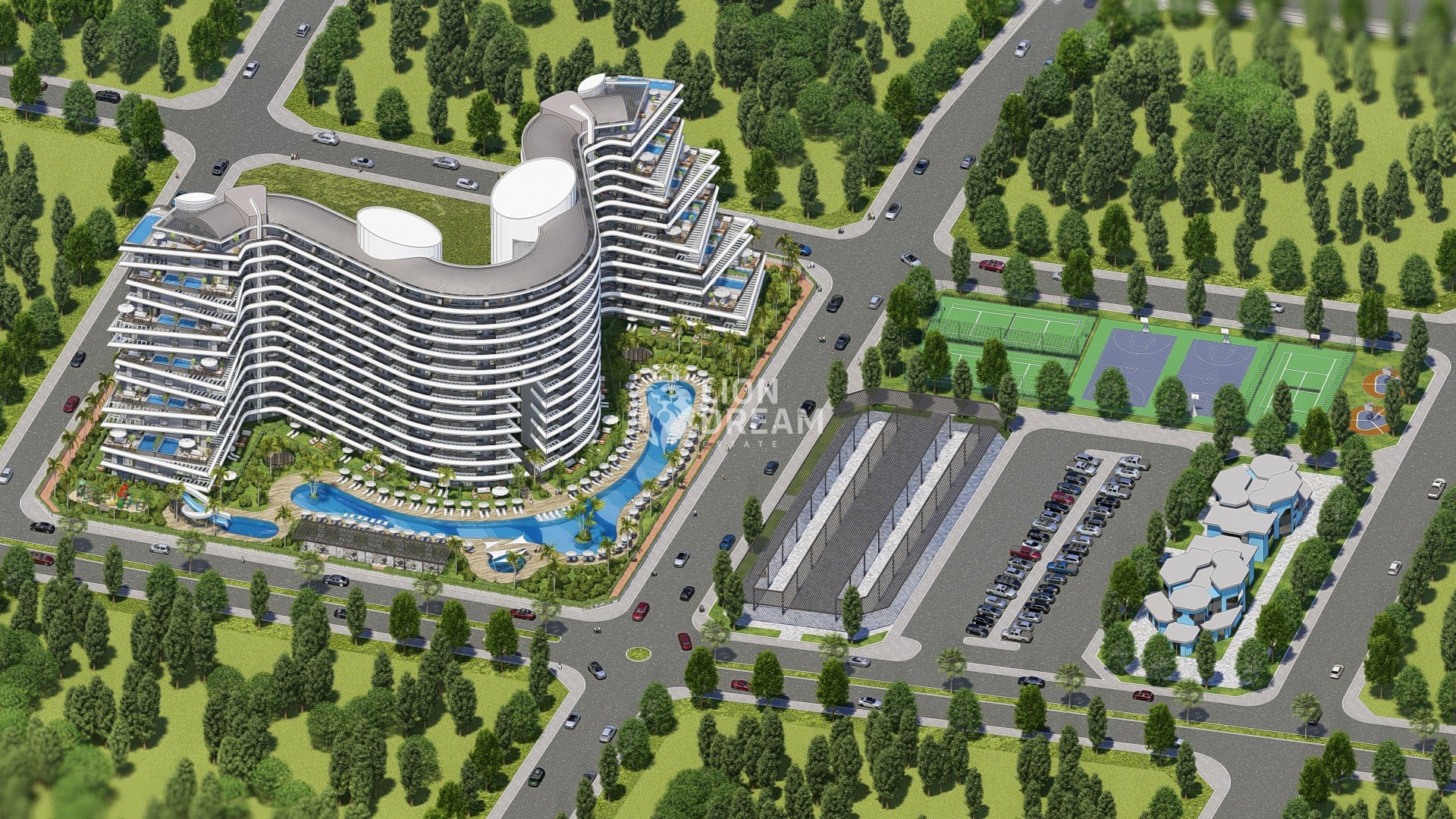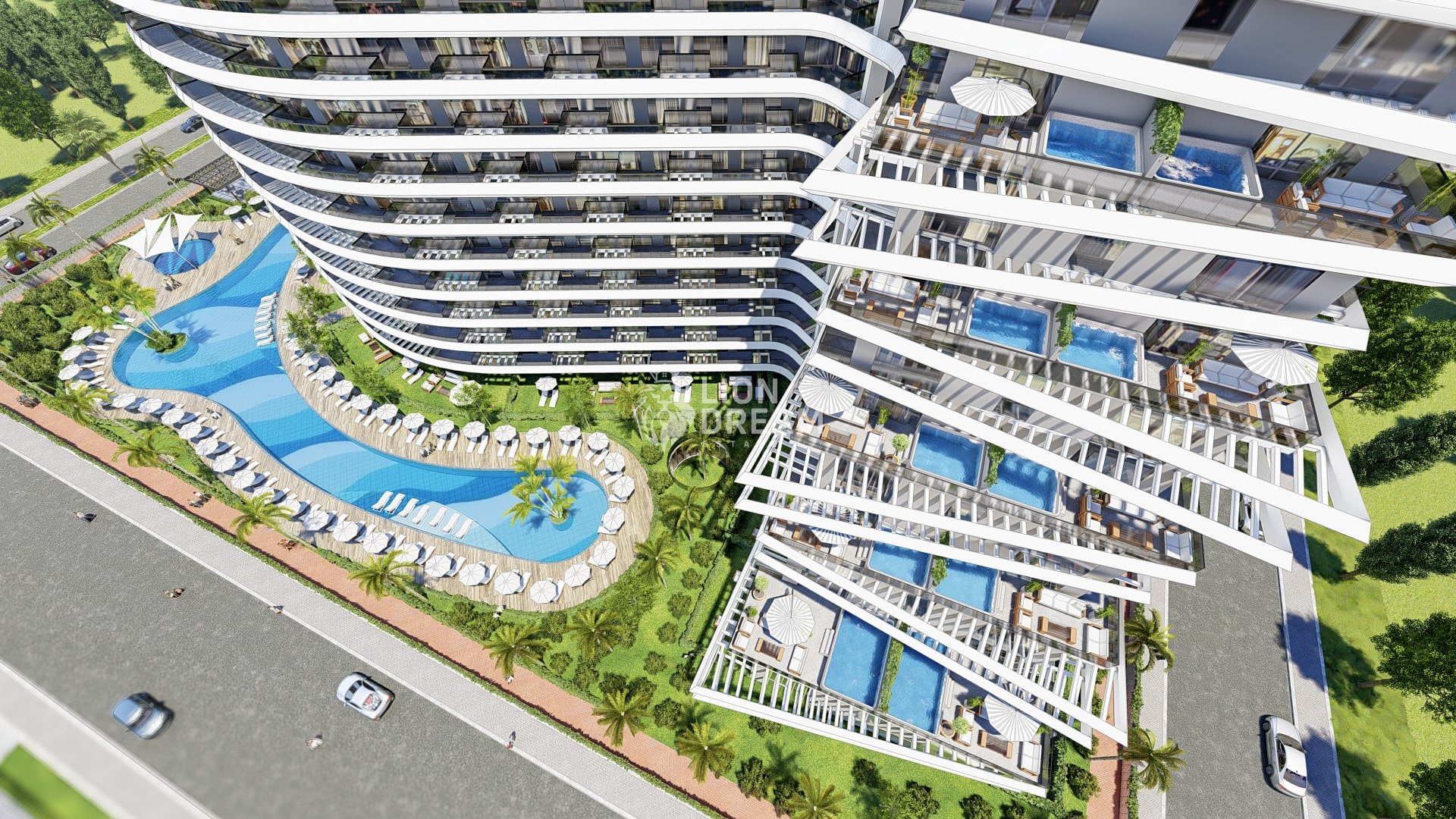 Lara bölgesinde kendi plajına sahip kompleksin zengin ve gelişmiş sosyal donatılar ve sadece konut kompleksimizin sakinleri için bir servis transferi yapılmaktadır. Projede toplam daire sayısı 265 dir