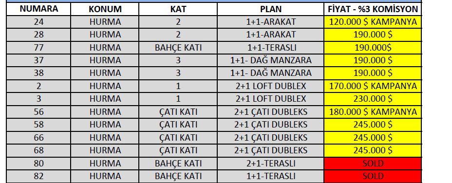 E-katalog bölümünden diğer dairelerin fiyatlarını inceleyebilirsiniz. Liste fiyatları kalıcı geçerliliğe sahip değildir, günlük olarak değişiklik gösterebilmektedir. Ayrıca kripto ile ödeme yapabilirsiniz