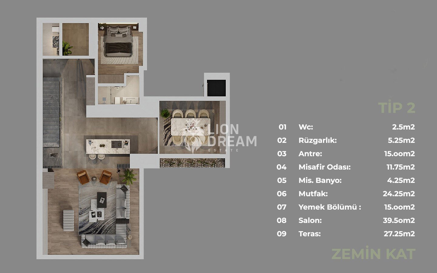 42 adet 6+1 ultra lüks villa tarzında tasarlanmış ve konforun ön planda olduğu bağımsız yaşam alanlarından oluşmaktadır.